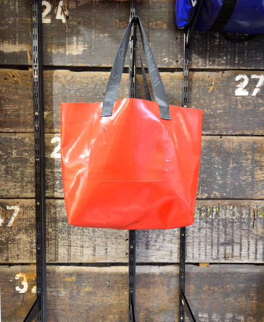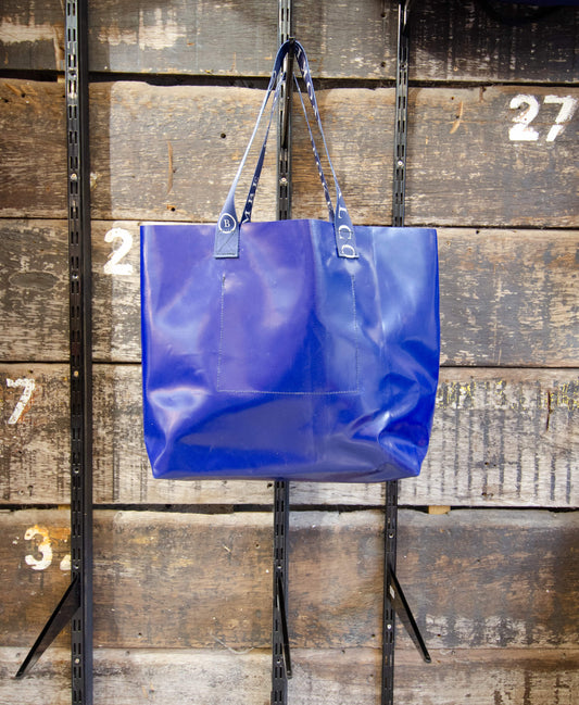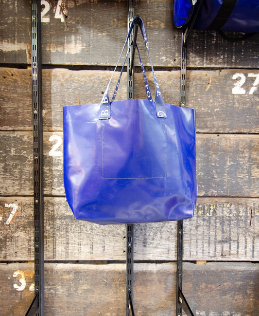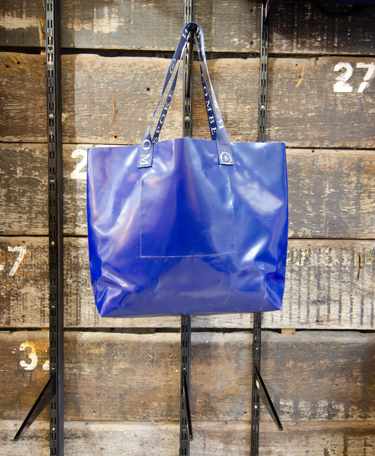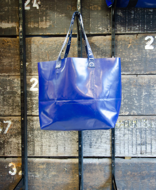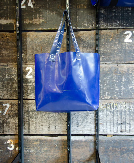 Each tote has an internal pocket for valuables and comes finished with our signature logo shoulder strap, but no two bags are the same as they're each taken from a unique cut of tarp.