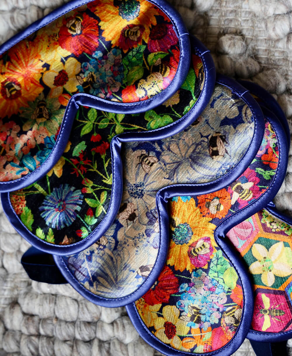 The Bee Garden Collection is a dynamic collaboration with former Head of Design at Liberty Art Fabrics, Emma Mawston. Every piece features original designs inspired by the flora and bees native to Devon and Cornwall.