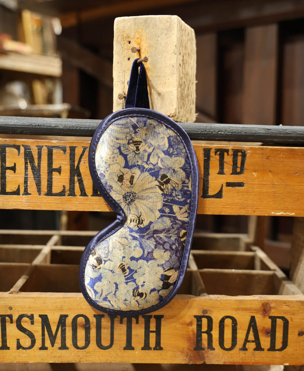 Enjoy a peaceful night's sleep with this soft and silky eye mask in Bumblebee Garden, Midday Sun. The perfect travel companion, these little luxuries are made from plush vintage velvet to help you feel relaxed and pampered.